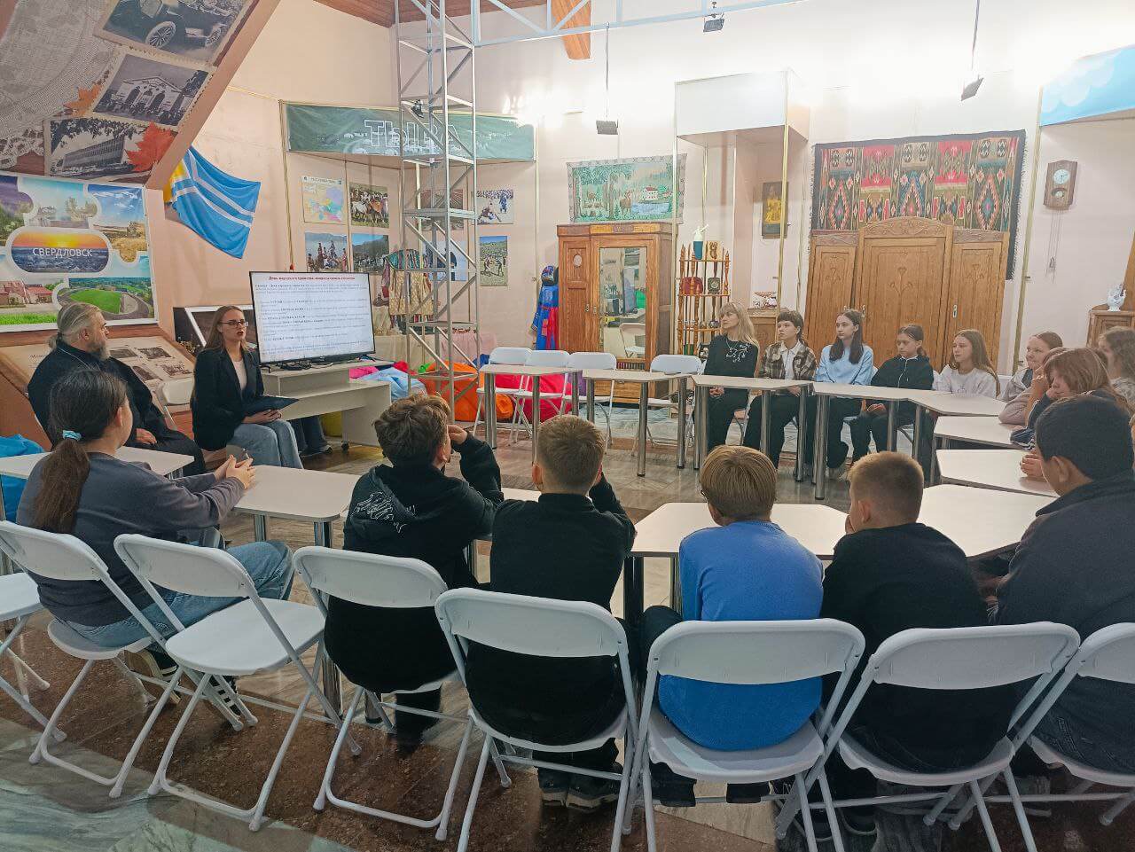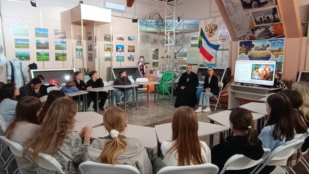 В рамках подготовки к Дню народного единства в учреждении был организован видеолекторий «В единстве народа – будущее России». Мероприятие направлено на укрепление национального единства, развитие чувства патриотизма и расширение знаний о культурном разнообразии страны. На мероприятии присутствовали: игумен Герман, учащиеся 6-а класса ГБОУ «Свердловский лицей №1».