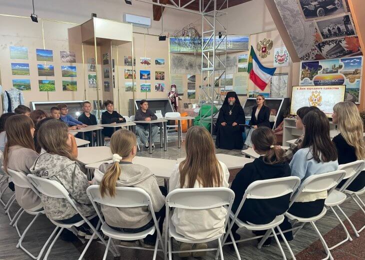 В рамках подготовки к Дню народного единства в учреждении был организован видеолекторий «В единстве народа – будущее России». Мероприятие направлено на укрепление национального единства, развитие чувства патриотизма и расширение знаний о культурном разнообразии страны. На мероприятии присутствовали: игумен Герман, учащиеся 6-а класса ГБОУ «Свердловский лицей №1».