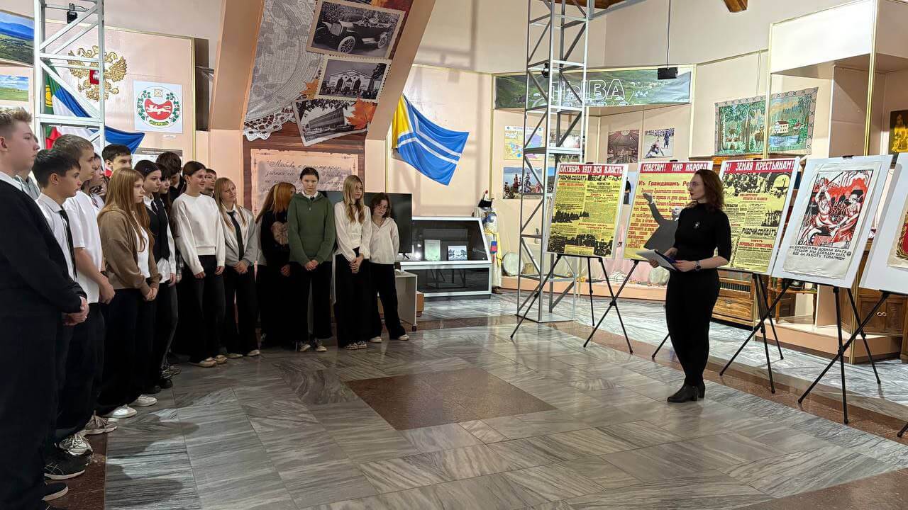 7 ноября в Свердловском краеведческом музее прошло открытие выставки плакатов периода октябрьского переворота и гражданской войны из фондов Свердловского краеведческого музея. В мероприятии принимали участие ученики 8го класса ГБОУ «Свердловская СШ № 9» и жители города.