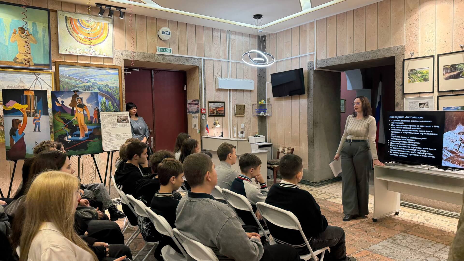 Участники мероприятия познакомились с картинами, созданными художниками с инвалидностью в нашей стране и за рубежом, узнали об их творческих методах и опыте, обсудили доступность культурной среды. Отдельный блок мероприятия был посвящен жизни и творчеству Екатерины Ивановны Литовченко.