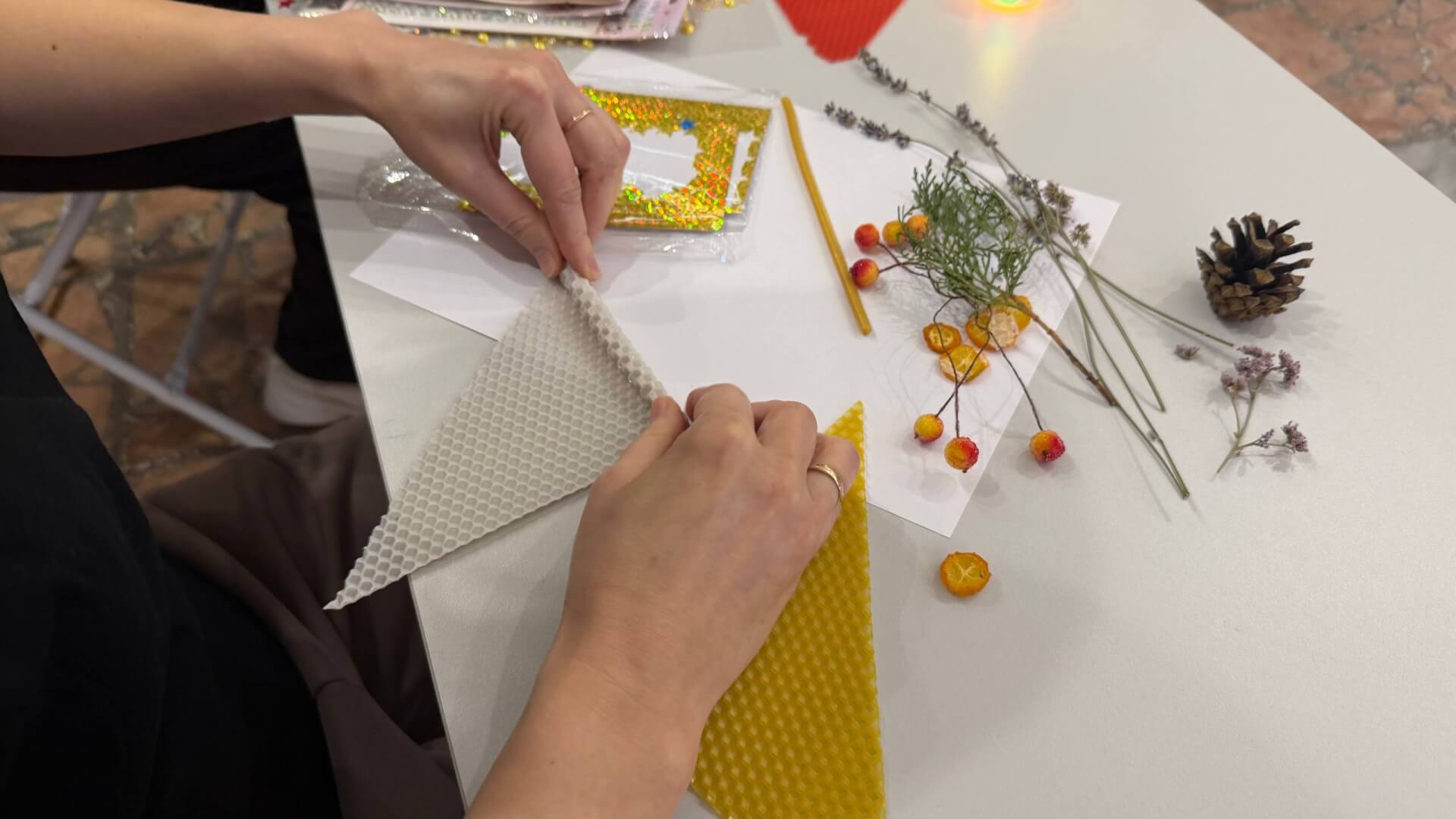 Перед началом мастер-класса гости узнали историю происхождения и значения вощины в традиционном рукоделии, а также о пользе использования экологически чистых материалов. Под руководством участники научились аккуратно разогревать вощину, сворачивать ее в формы, создавать декоративные элементы и украшать готовые свечи натуральными составляющими: палочками корицы, шишками, бусинами и лентами.